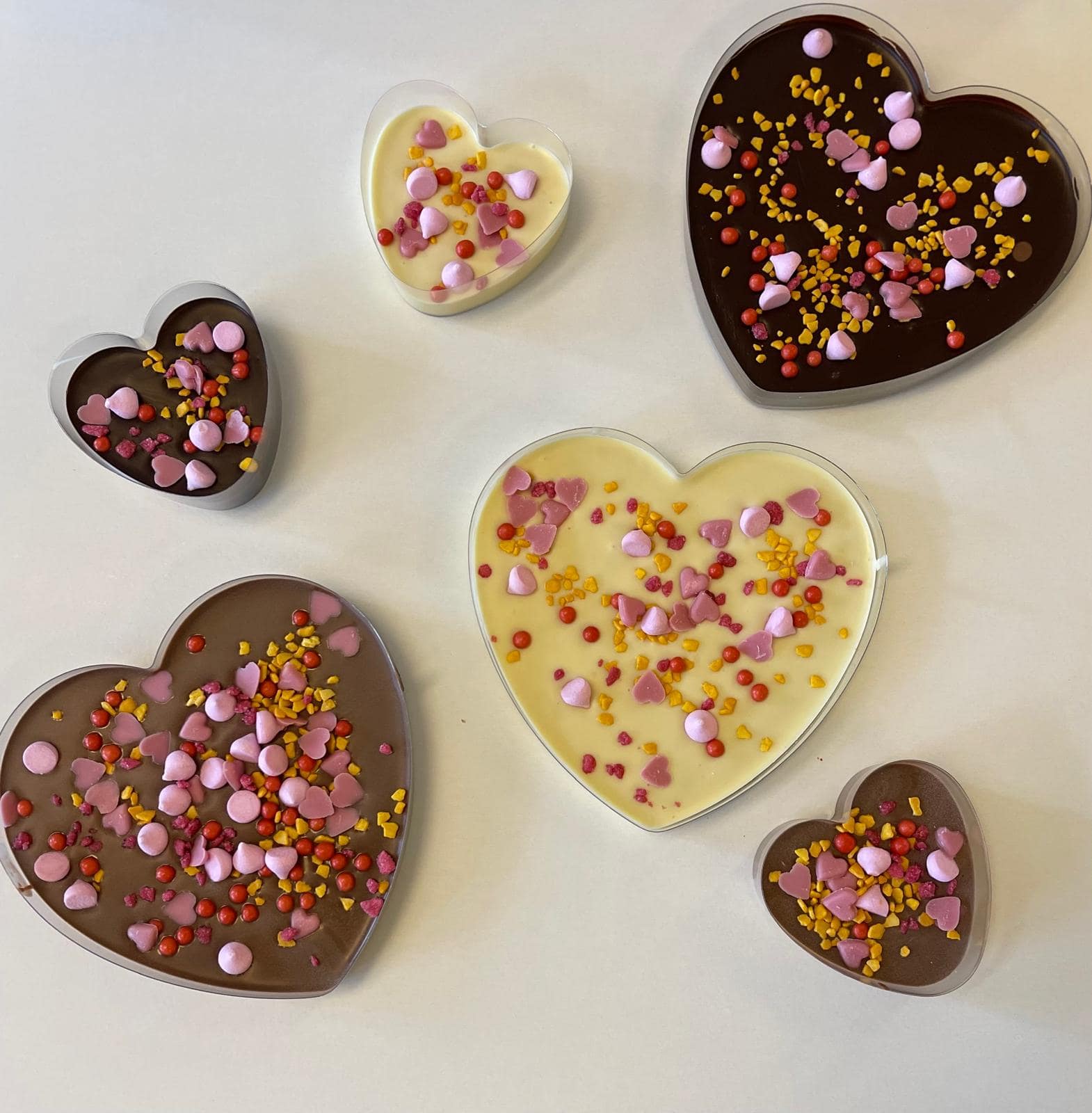 Laat je hart smelten met onze verrukkelijke Chocolade Harten, een heerlijk cadeau voor Moederdag of je geliefde. Elk hart is gemaakt van de fijnste chocolade, verkrijgbaar in melk, wit en puur, en verrijkt met stukjes merengue en crunchy chocolade.
